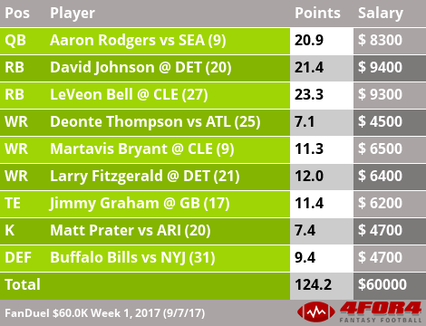 Optimal Fanduel Draftkings Cash Lineup For Week 1 4for4