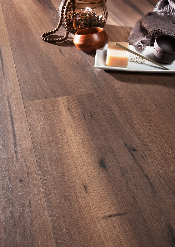 The beautiful walnut effect flooring is made up of extra wide planks that are detailed with a wood grain design for an authentic look. Ticino Walnut generates a powerfully beautiful atmosphere with many colours including. As well as looking great natural laminate flooring is a great choice for rooms that get a lot of traffic as it is durable against scratches and moisture keeping it looking great for longer.